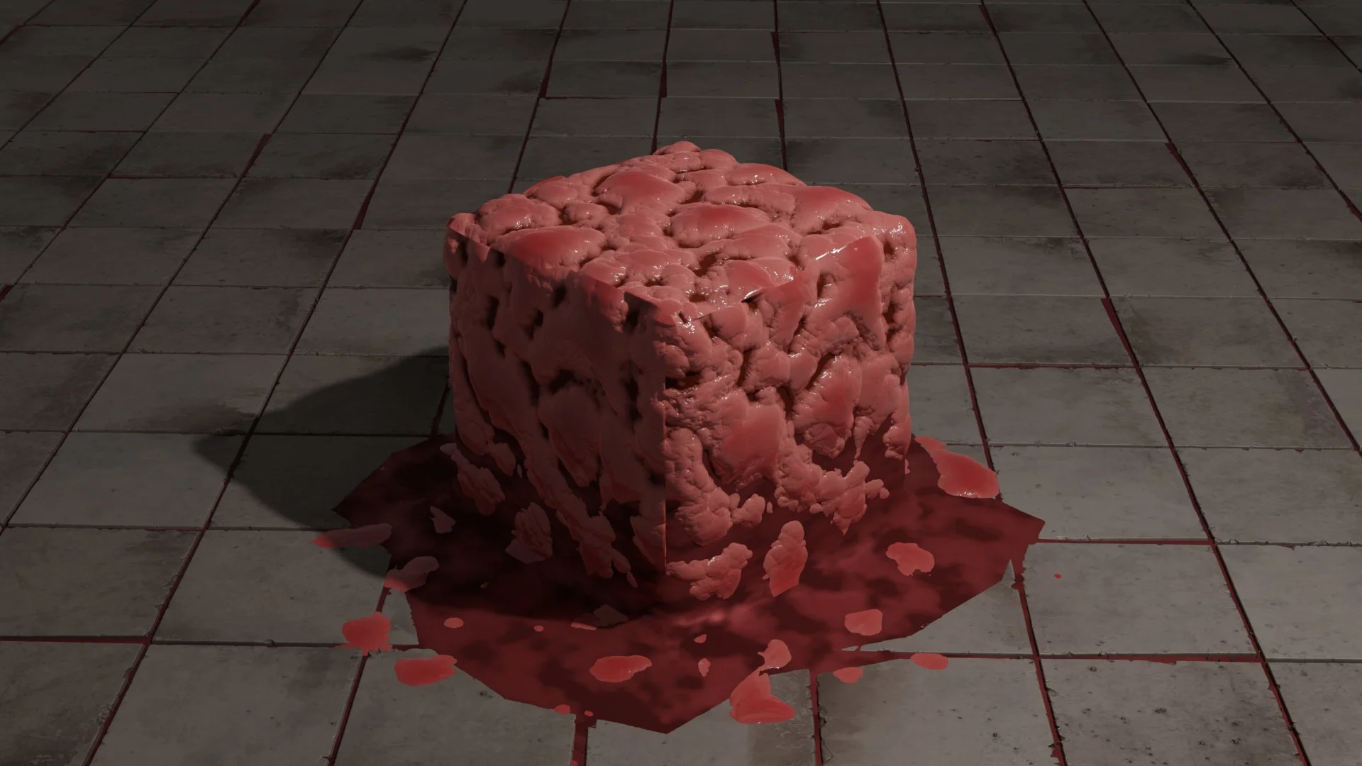 A bonus Default Cube?! This was a scrapped version of Default Cube 3 based on the meat cube from that one Gears of War Unreal Engine 3 tech demo from 2009 E3, remember that one? No?... Just me? Well, that meat cube has lived rent free in my head since then and I wanted to honor it with a render, but alas, I couldn't get the scene to work without doing more work than I was willing to put into these simple renders (at the time).